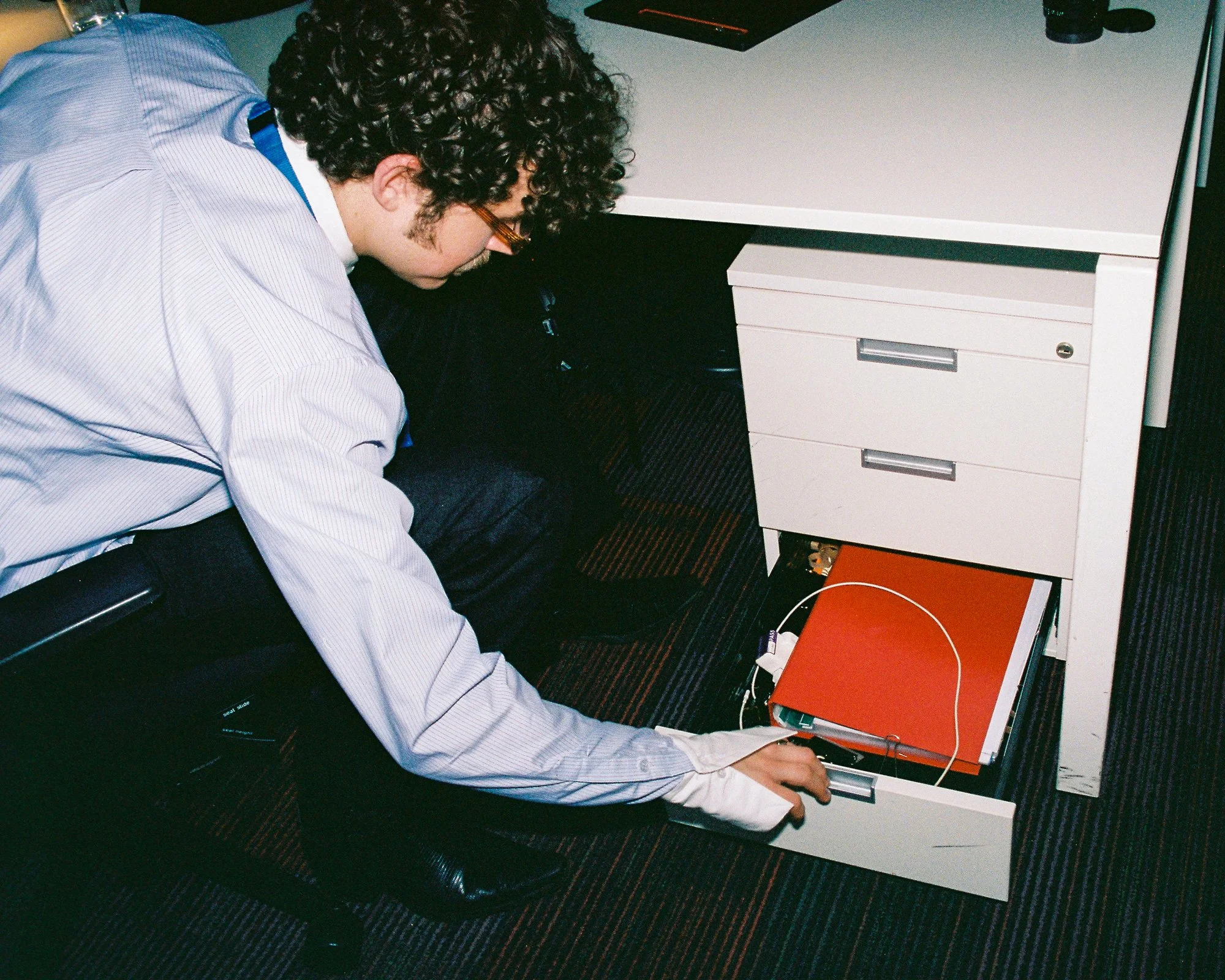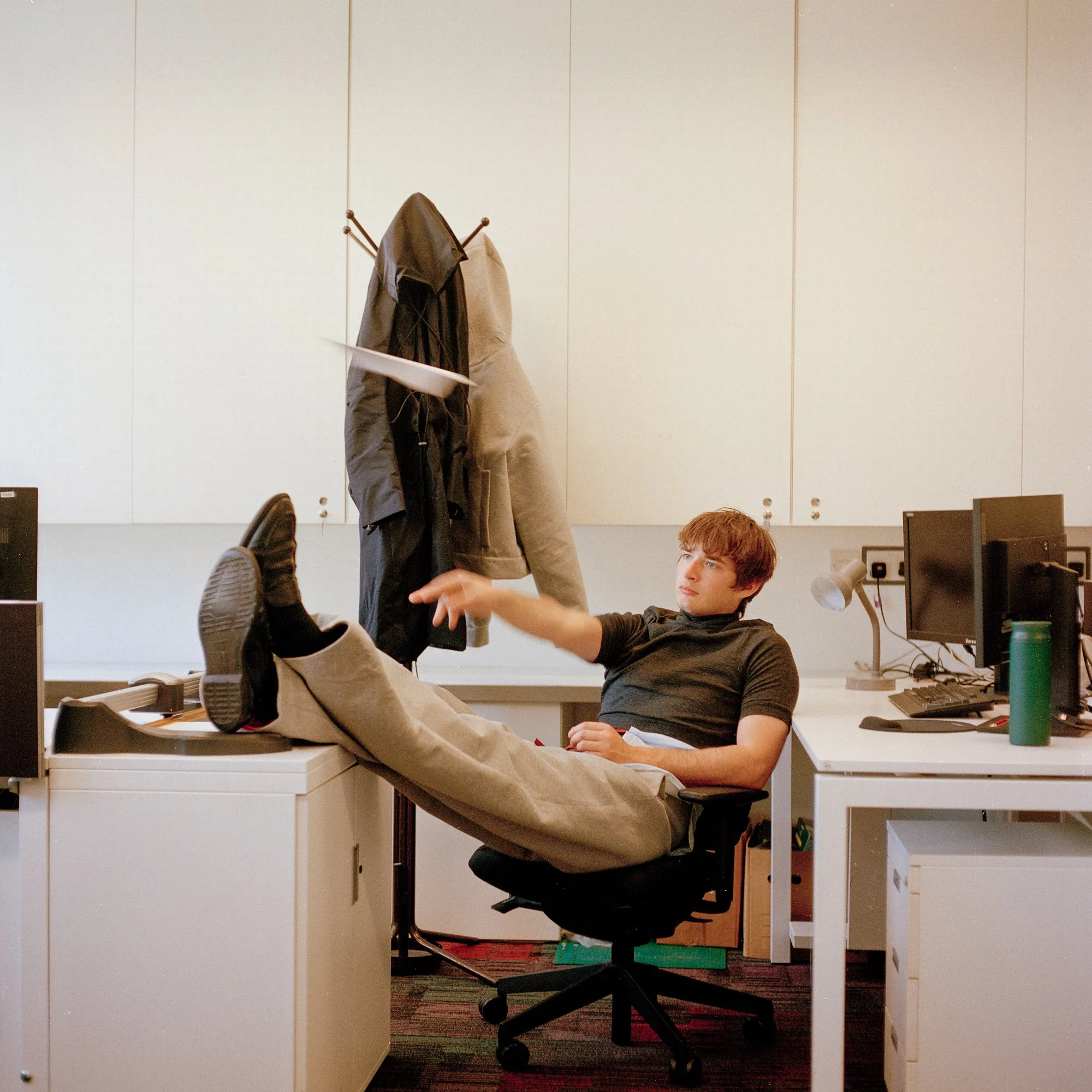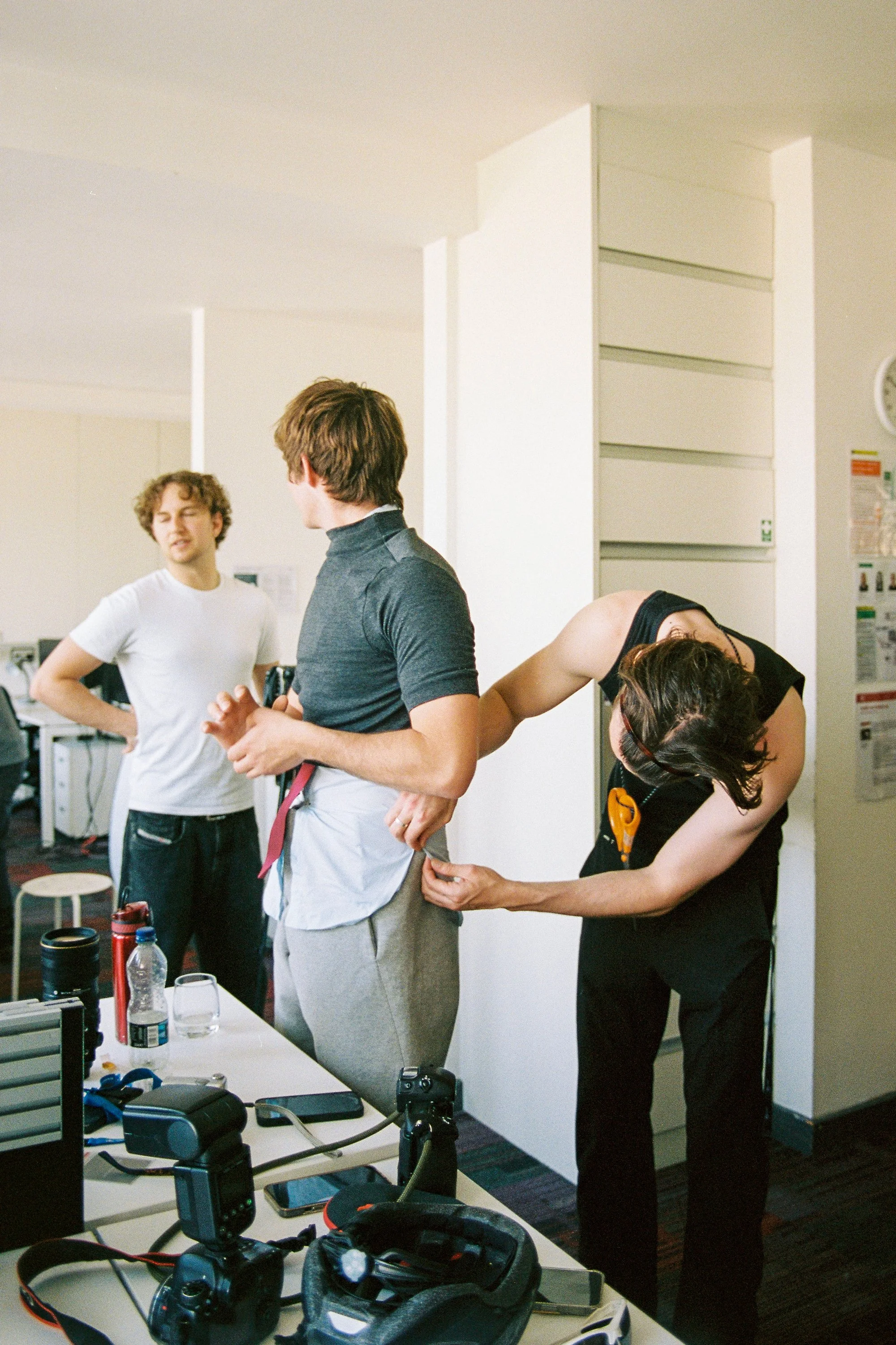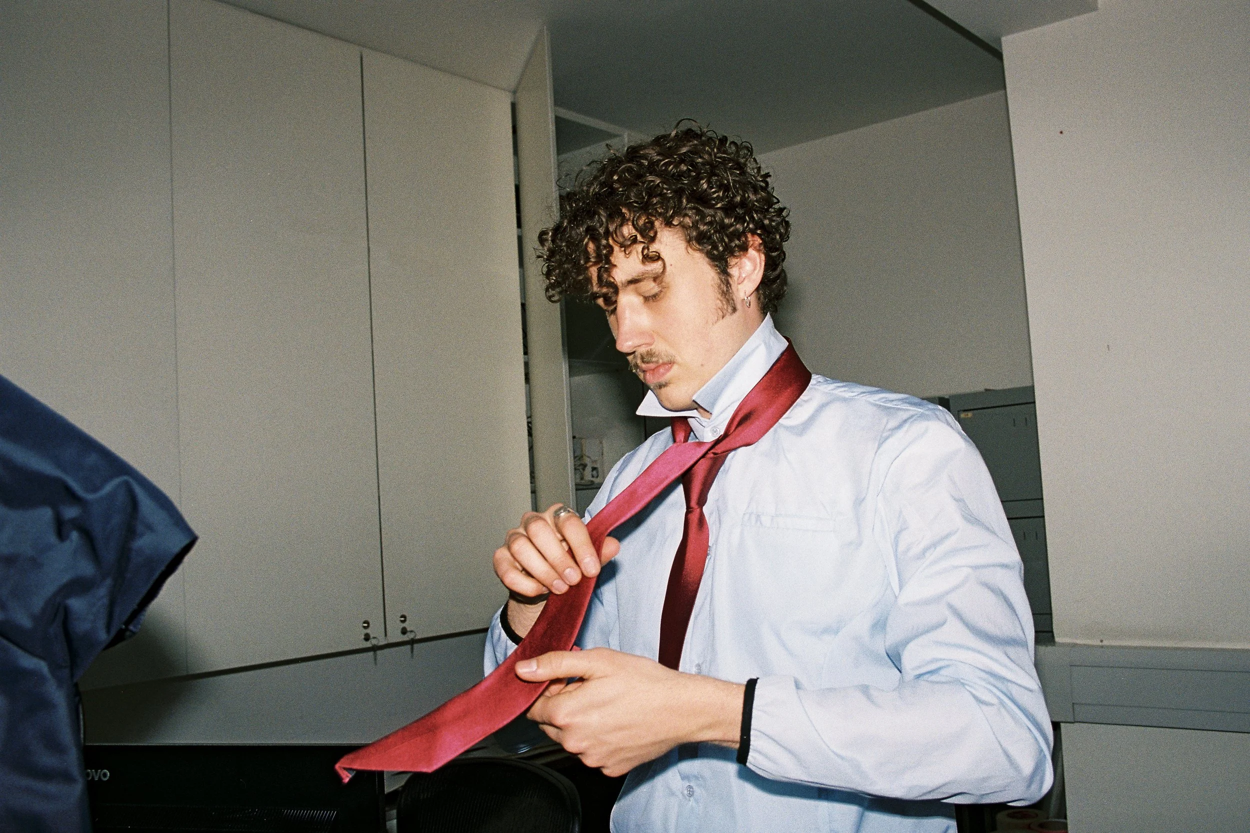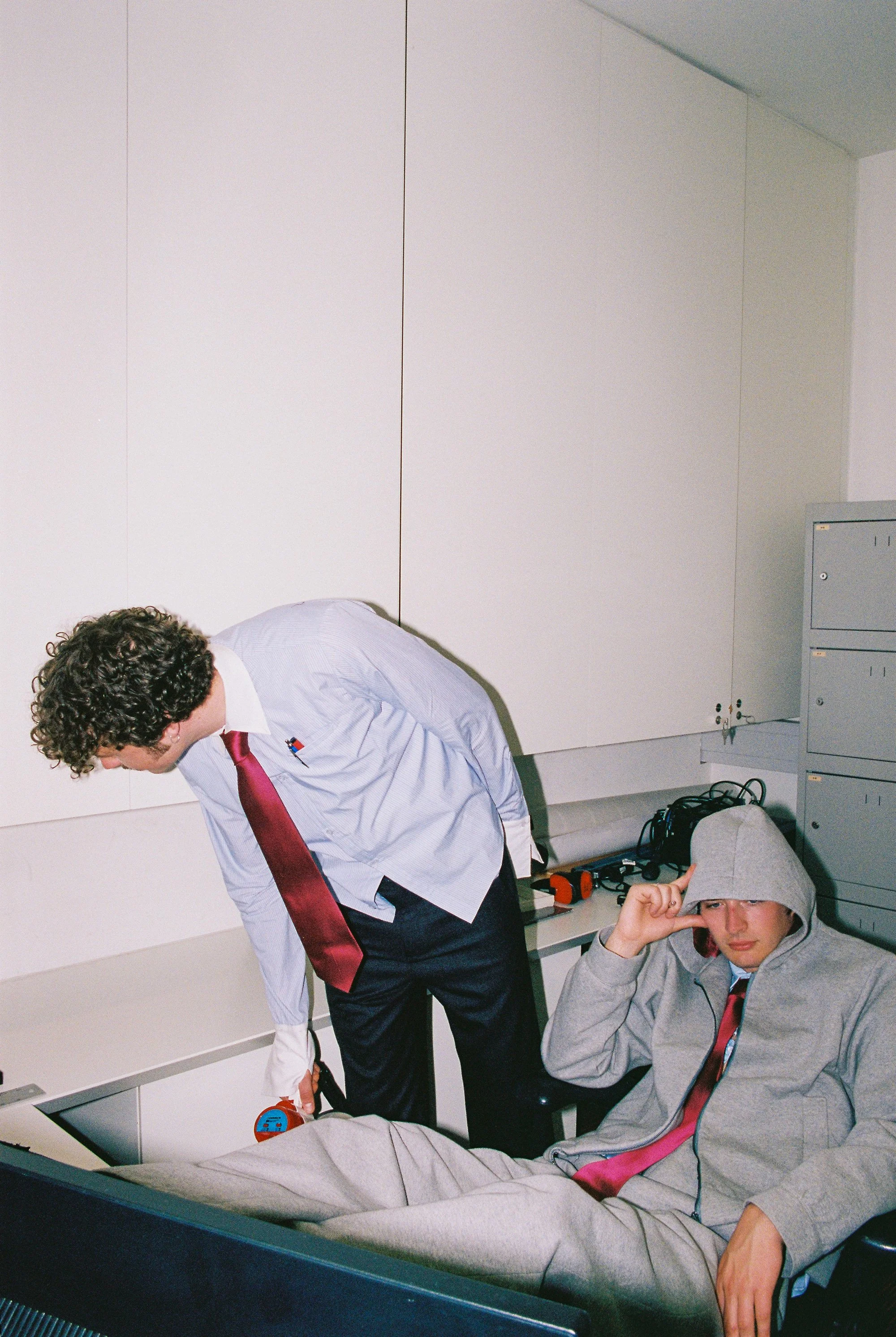 “Office wear in pursuit of the new day -bound by fluorescent hours, heavy and still.But the fabric remembers motion.Stillness is a story we no longer wear.”